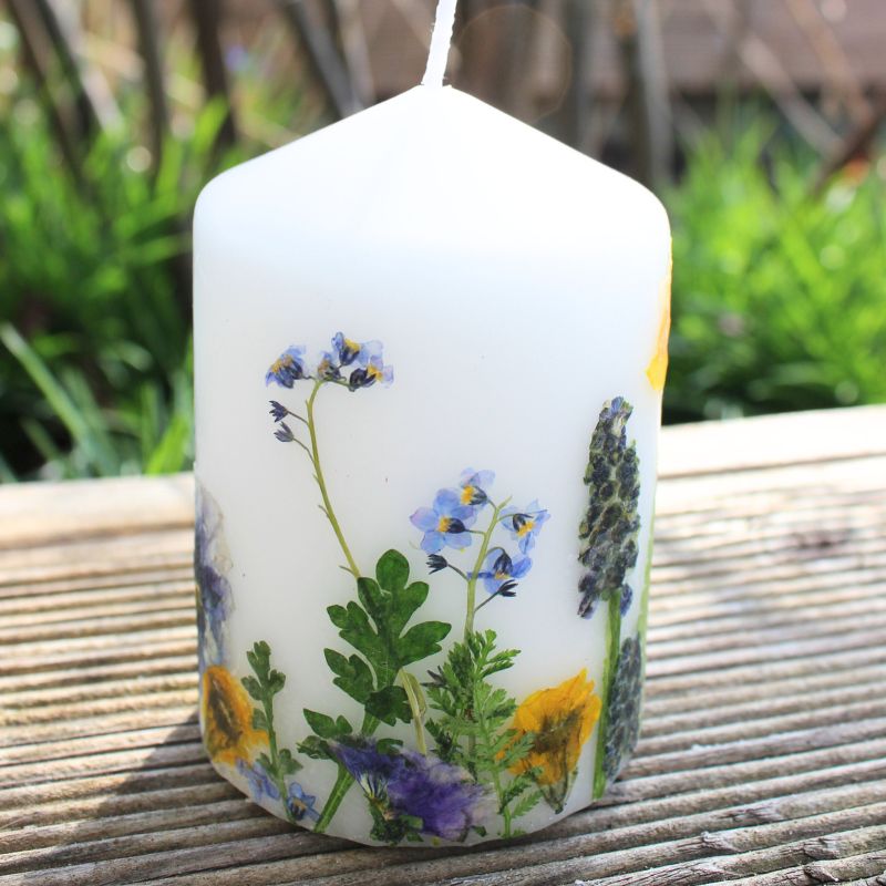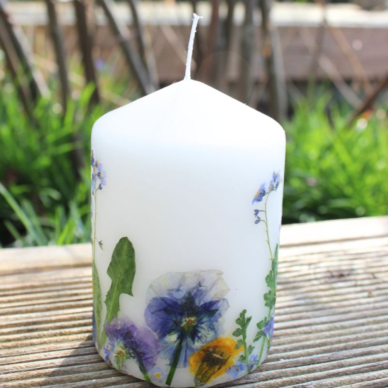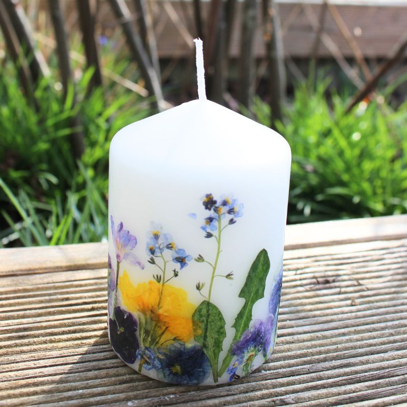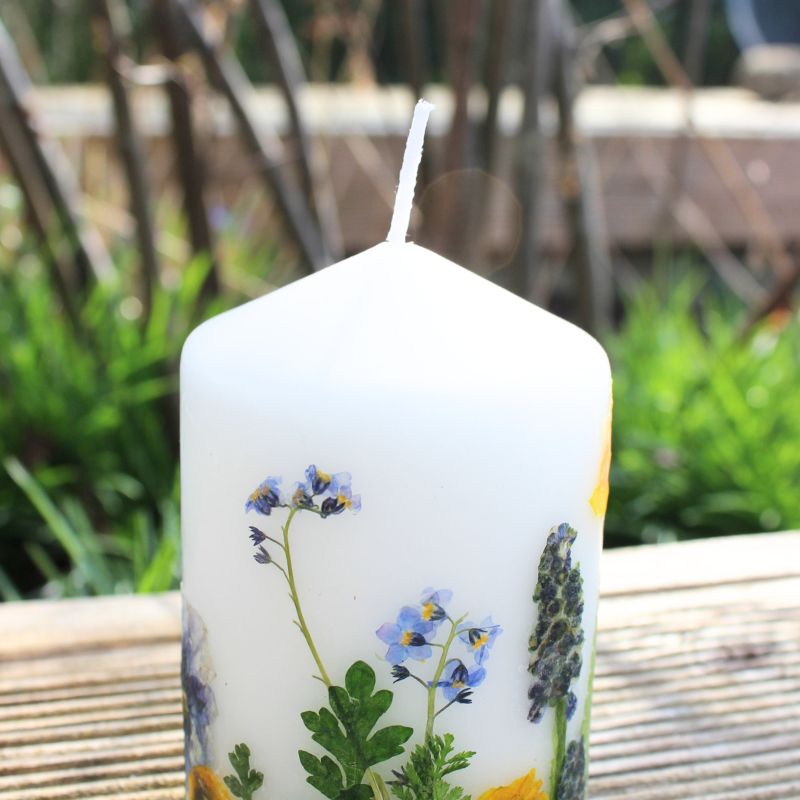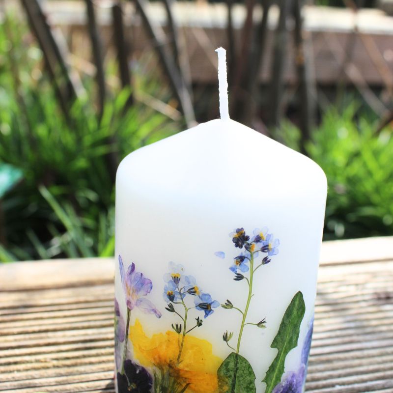 Kerze mit echten gepressten Blumen