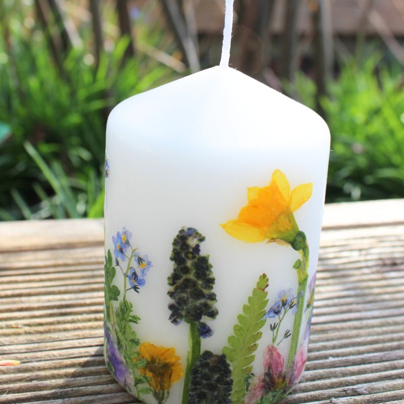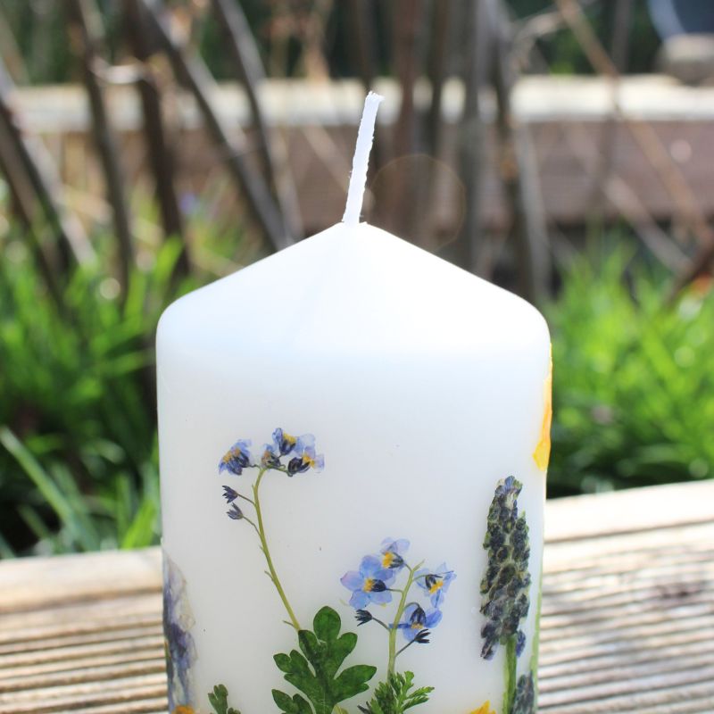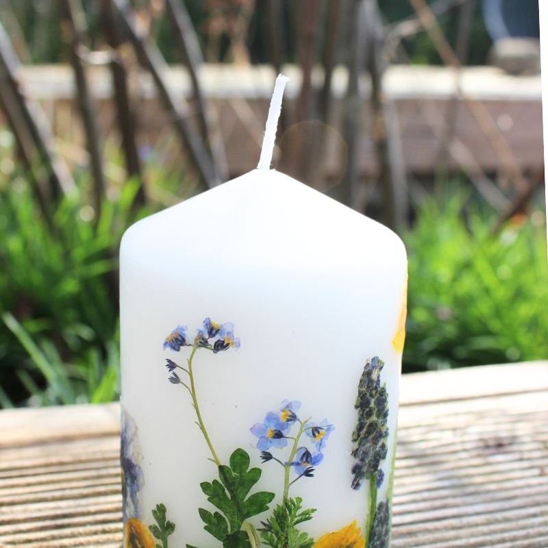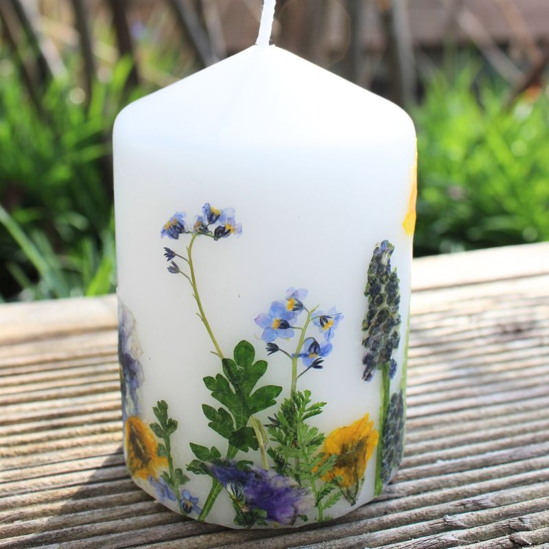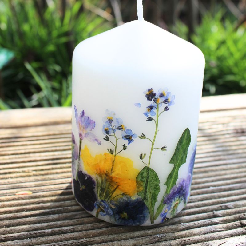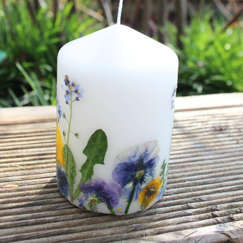 Kerze mit echten gepressten Blumen