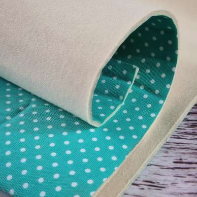 Dieser Stoff ist durch die Schaumstoffmitte stabil aber dennoch weich, er muss nicht verstärkt werden, franst nicht aus, ist bügelbar und lässt sich einfach mit einer Universalnadel vernähen auch mit mehreren Lagen.
