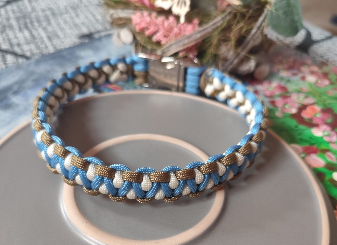 Buntes, handgemachtes Paracord-Hundehalsband: robust, bequem und ein echter Hingucker.