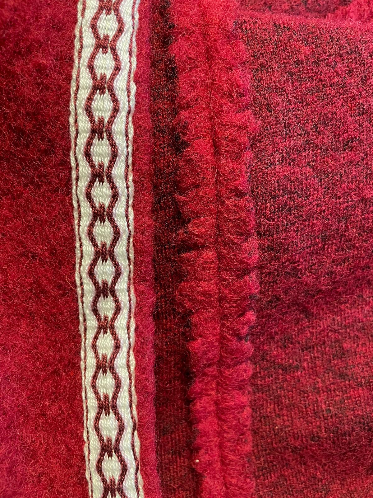 Der schöne rote Stoff ist aus 80% Wolle.